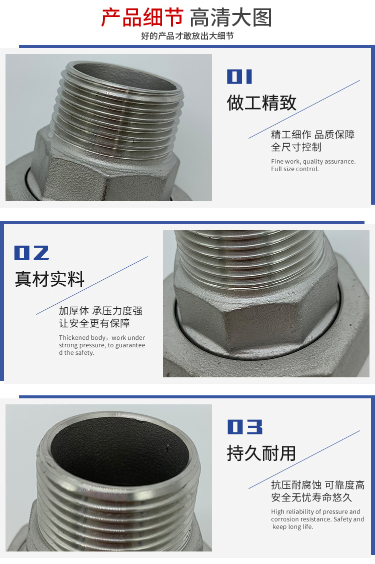 | 不(bu)鏽鋼雙頭(tou)外牙活接(jiē)管件 |